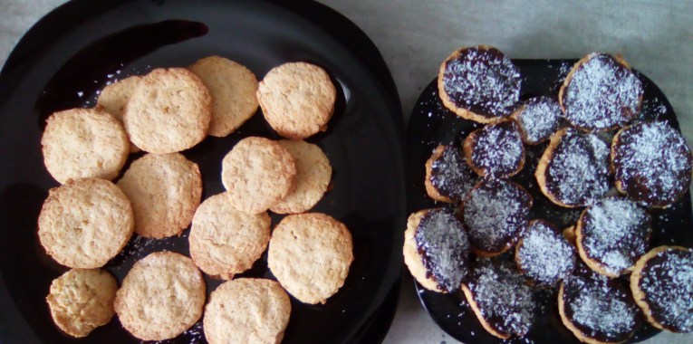 Laisser refroidir les biscuits, puis étaler du chocolat fondu sur l’une des faces des biscuits.